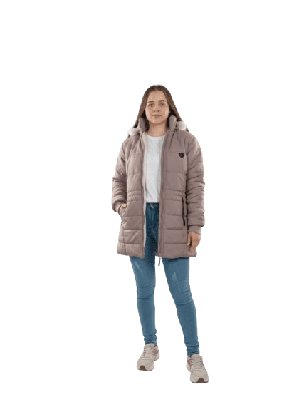Chaqueta puffer larga con capucha, ideal para climas muy fríos, con un color sofisticado.