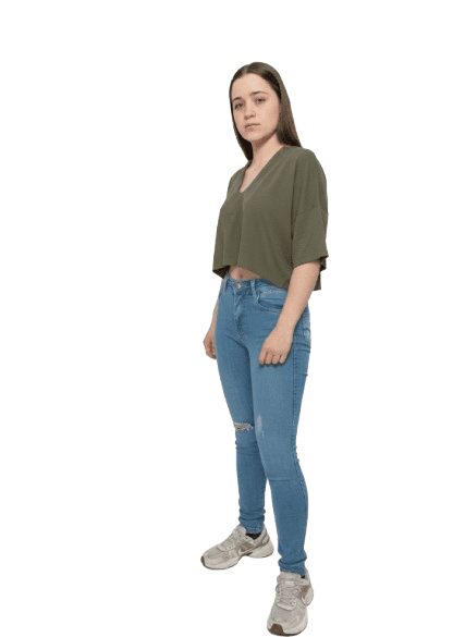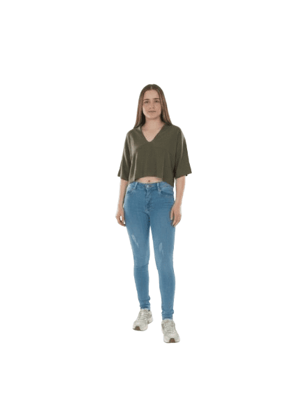 Elegante top corto de manga corta y cuello en V profundo, perfecto para climas cálidos.